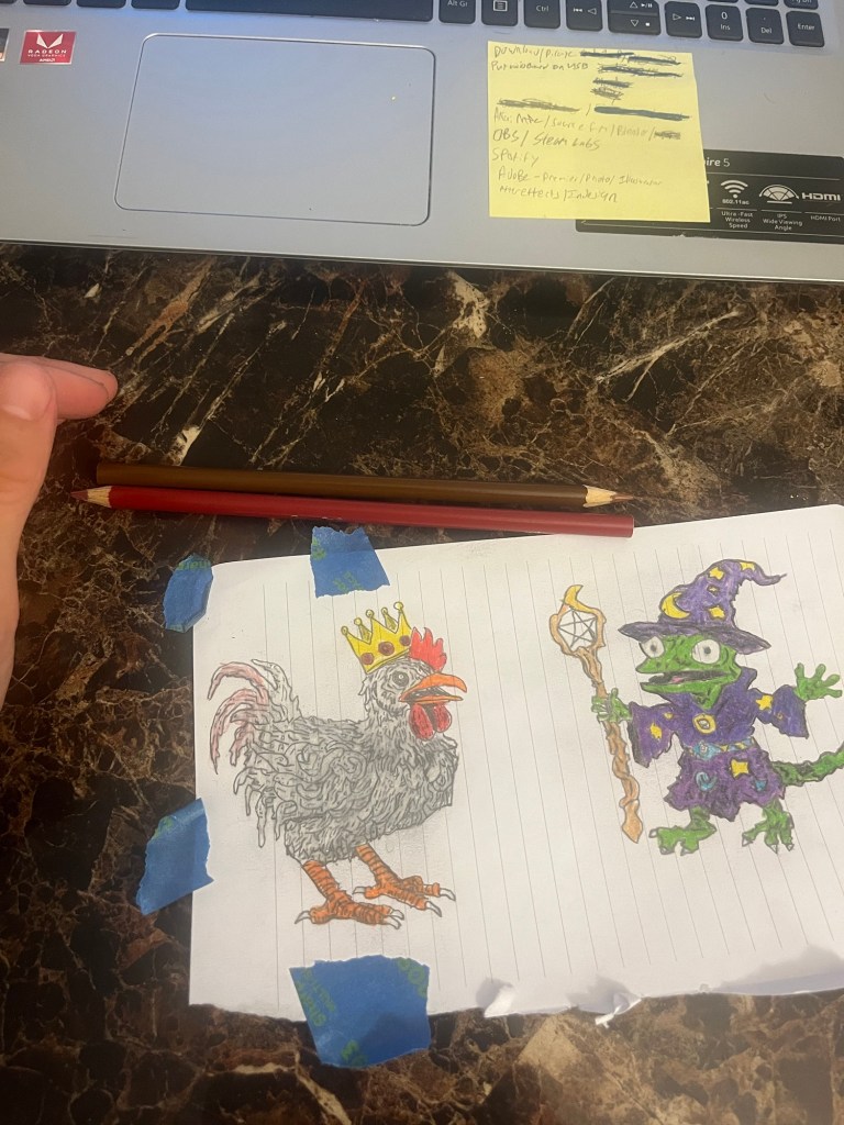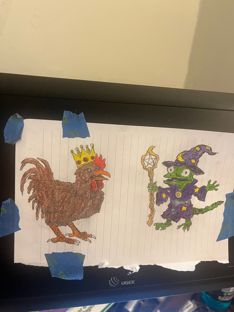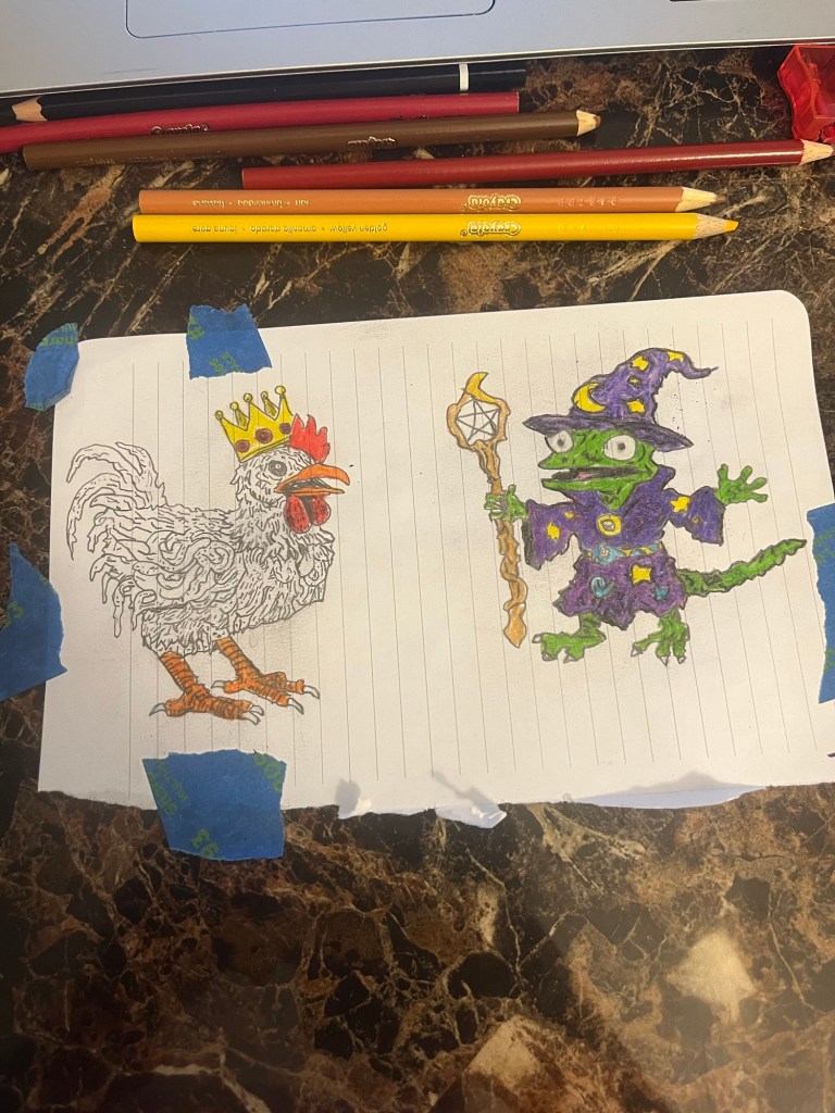 Starting august 18th and ending Sept 18 with a few misses along the way. I started with water color but quickly decided that was not good for me and went with a more comfortable medium, colored pencils. A few of these were traced but I think over all I had improved. Hardest thing I drew was the carousel horse imo. Overall I found this challenge to be fun and really showed me that I enjoy drawing. Stay tuned I’m sure there’ll be more coming soon. Matter of fact this drawing prompt book is very old probably from highschool but I’m nearly finished, so I’ll be posting from there until it ends. I’ve also considered doing more design work. For example the king gizzard and lizard wizard traced drawing(Dall-e) could probably sell some shirts. Stay tuned because it seems I’ll have to get a side hustle very soon. Going back to college 5k a semester and 3k down on a new car got me back in finical ruin, this is usually my default state but I had actually been doing good for a little while there, but I’m back to broke boy status.