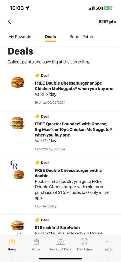 The McDonald’s app is a good one with lots of daily deals but I am seeing a sharp increase in prices and it may be hard for them to compete when chilis has a 3/$10 that is more food at a higher quality in a better atmosphere.